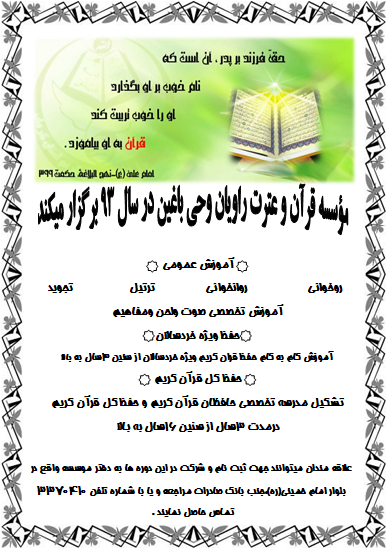 نشانی : جنب بانک صادرات باغین مرکز قرآنی شهر باغین